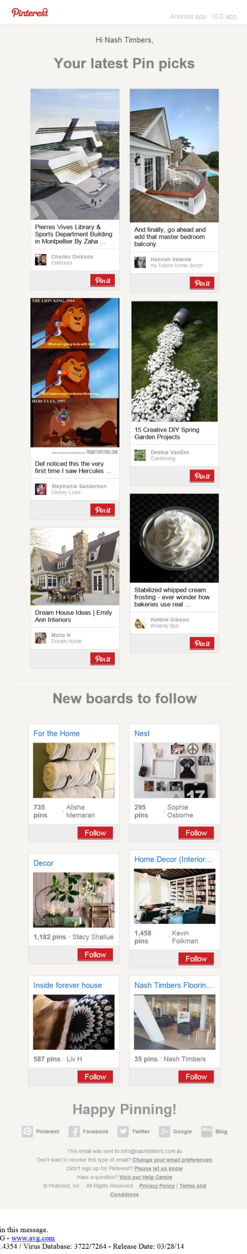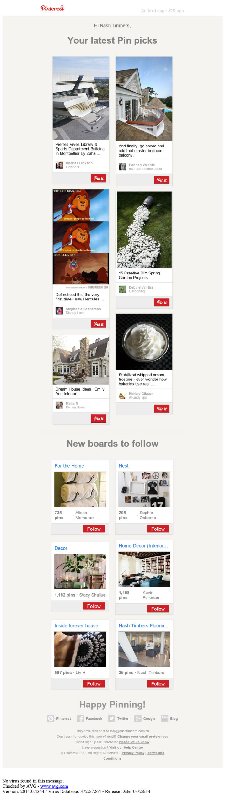 PINTEREST WEEKLY EMAIL RECOMMENDS