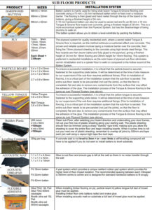| Sub floor products: recommendations acoustic underlay ply moisture barrier adhesives | |